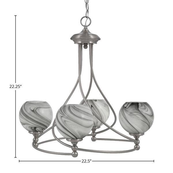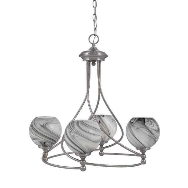 Royale 4-Light Brushed Nickel Chandelier, Round Chandelier with 5.75 in. Onyx Swirl Glass Shades, No bulbs included