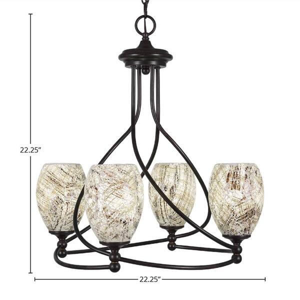 Royale 4-Light Dark Granite Chandelier, Round Chandelier with 5 in. Natural Fusion Glass Shades, No bulbs included