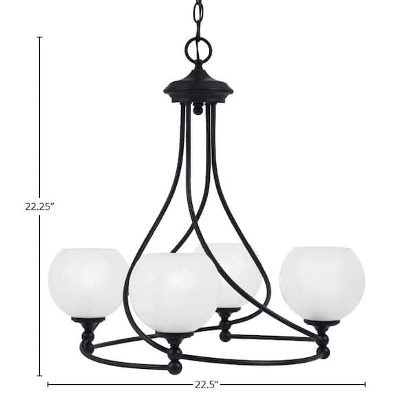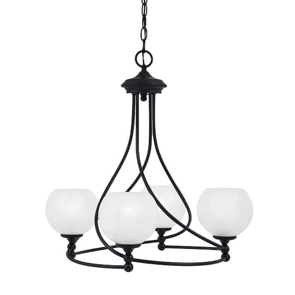 Royale 4-Light Matte Black Chandelier, Round Chandelier with 5.75 in. White Marble Glass Shades, No bulbs included