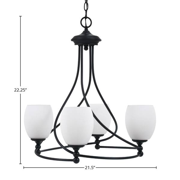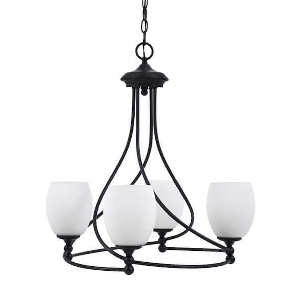 Royale 4-Light Matte Black Chandelier, Round Chandelier with 5 in. White Linen Glass Shades, No bulbs included