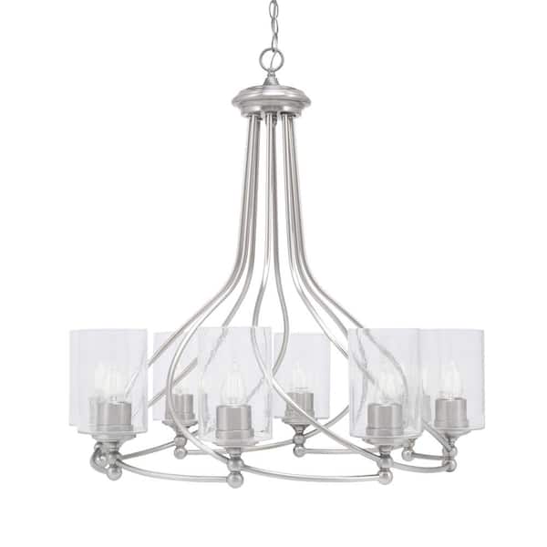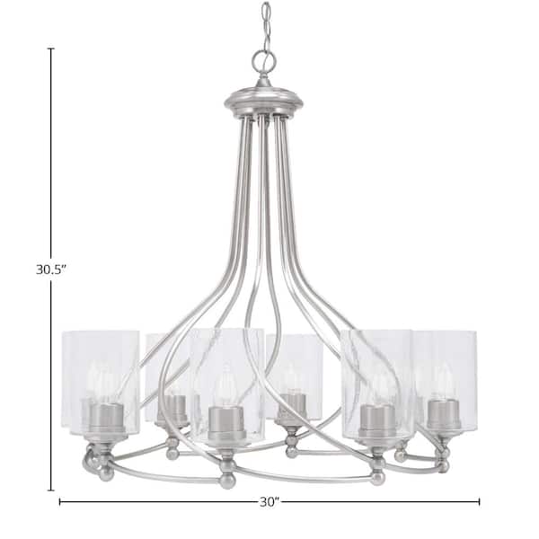Royale 8-Light Brushed Nickel Chandelier, Round Chandelier with 4 in. Clear Bubble Glass Shades, No bulbs included