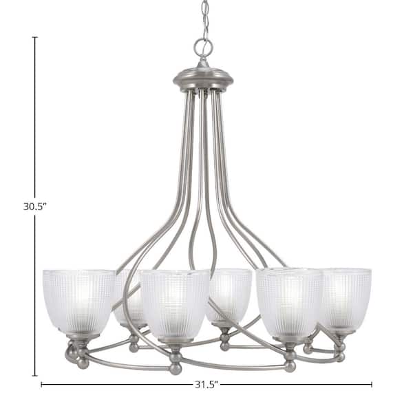 Royale 8 Light Brushed Nickel Chandelier, Round Chandelier with 5 in. Clear Ribbed Glass Shades, No Bulbs Included