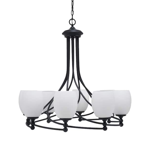 Royale 8 Light Matte Black Chandelier, Round Chandelier with 5 in. White Linen Glass Shades, No Bulbs Included