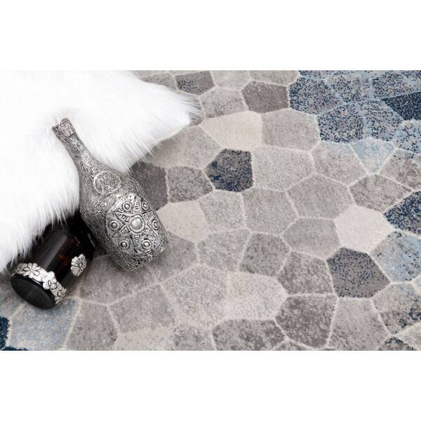 Havana 2' x 9' (Exact Size: 2'3" x 9') Geometric Indoor Runner Rug, Blue Beige, Contemporary