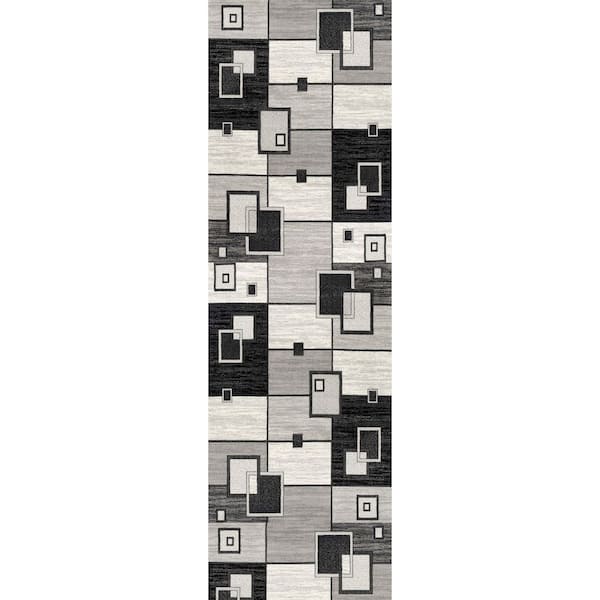 Montage Grey Black, Checkered 2 ft. x 14 ft. Geometric Indoor Runner Rug