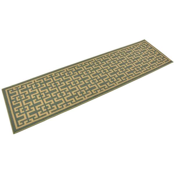 Ancient Greek Style Design Teal Blue Color 2 ' Width x 7' Your Choice Length Slip Resistant Rubber Stair Runner