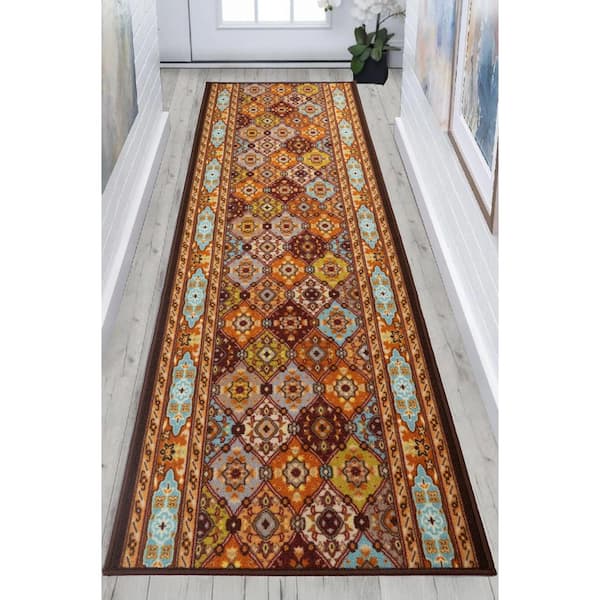 Bakhtiari Design Cut to Size Multicolor Color 36" Width x Your Choice Length Custom Size Slip Resistant Runner Rug