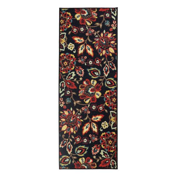 Berber Collection Floral Black 26 in. W x 348 in. L Stair Runner 62.92 sq. ft.