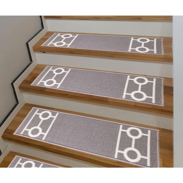 Chain Border Custom Size Gray 9 in. x 36 in. Indoor Carpet Stair Tread Cover Slip Resistant Backing (Set of 13)