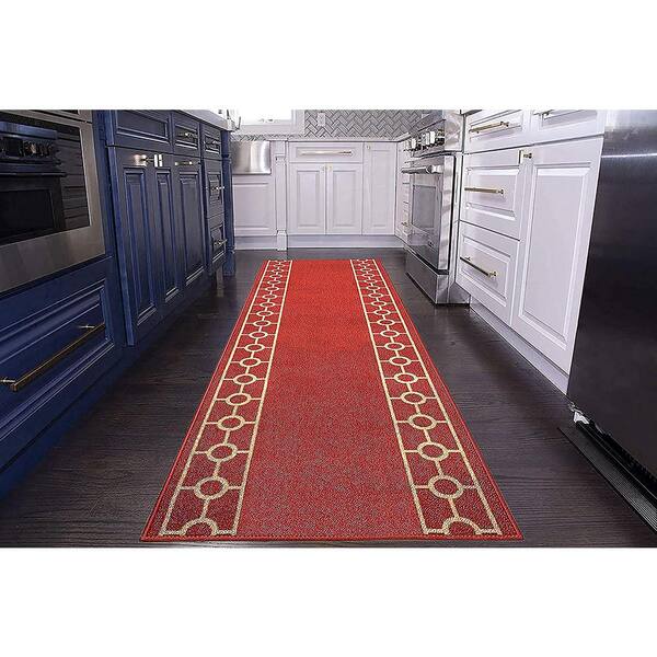 Chain Border Custom Size Red 144 in. x 32 in. Indoor Stair Tread Cover Matching Runner Slip Resistant Backing (1-Piece)