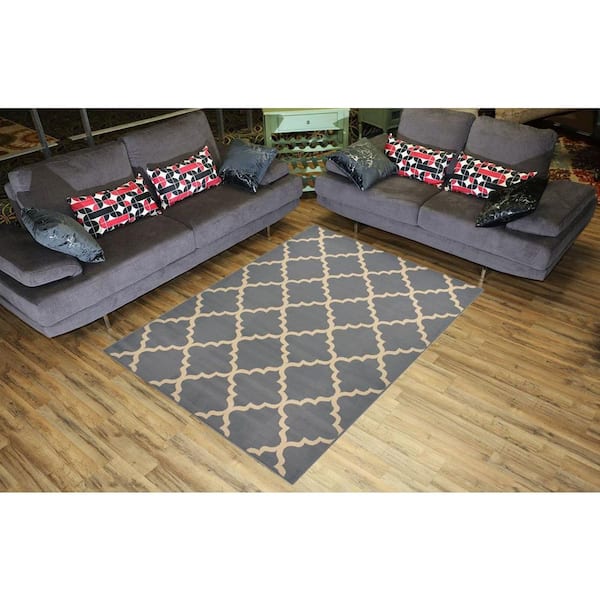 Conur Collection Grey 5 ft. x 7 ft. Trellis Design Area Rugs
