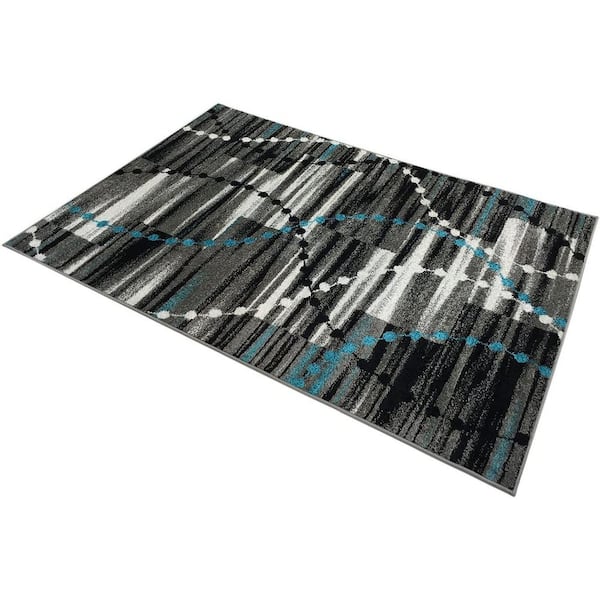 Designer Stripes and Beads Gray 5 ft. x 7 ft. Classic Braided Modern Contemporary Polypropylene Rectangular Area Rug
