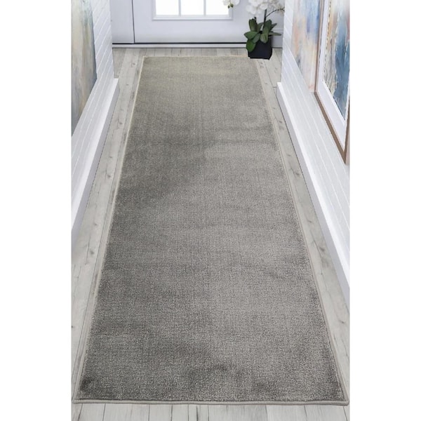 Euro Solid Grey 32 in. Width x Your Choice Length Custom Size Runner Rug