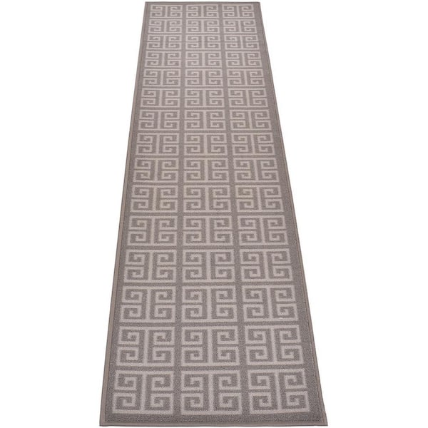 Greek Key Meander Design Gray 2 ' Width x 7' Your Choice Length Slip Resistant Rubber Stair Runner Rug