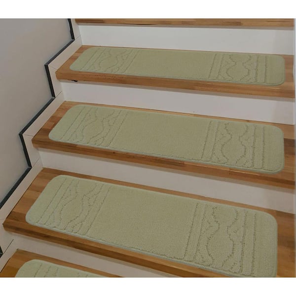Maximus Trellis Border Cream ​ 8.5 in. x 30 in. Indoor Carpet Stair Tread Cover Slip Resistant Backing (1 Pieces)