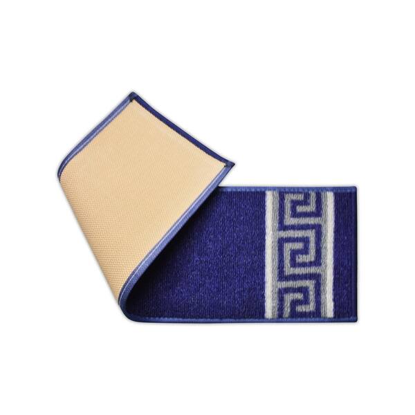 Meander Custom Size Navy 9 in. x 31.5 in. Indoor Carpet Stair Tread Cover Slip Resistant Backing (Set of 7)
