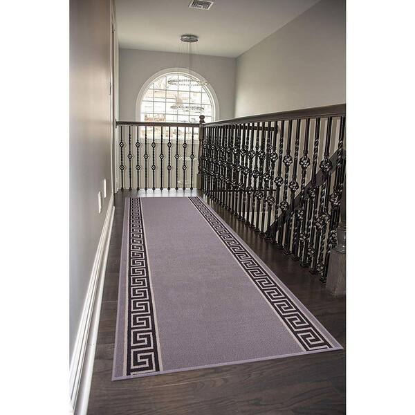 Meander Custom Sizes Gray 36 in. x 32 in. Indoor Stair Tread Cover Landing Mat Slip Resistant Backing