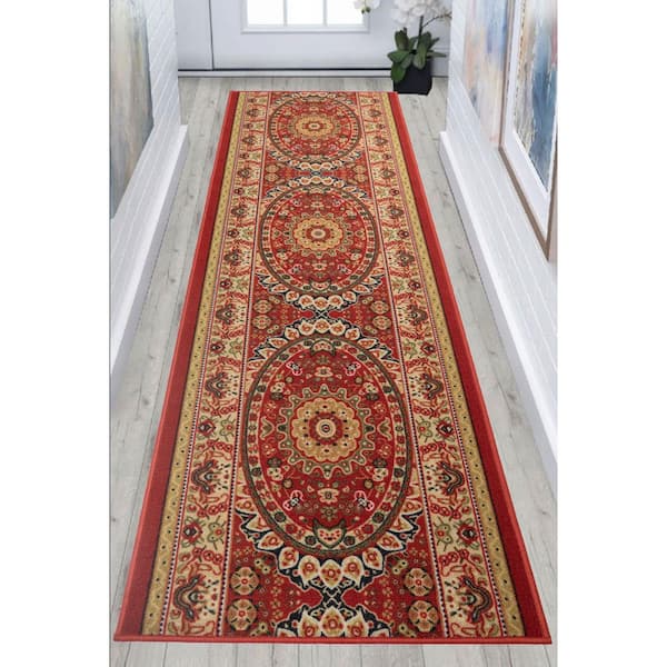 Medallion Oriental Cut to Size Red Color 36" Width x Your Choice Length Custom Size Slip Resistant Rubber Runner Rug