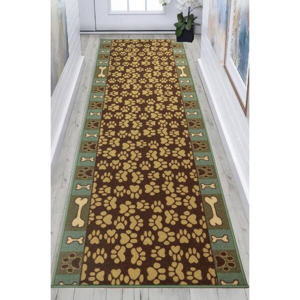 Pet Paw and Bones Green 26 in. W x 72 in. L Stair Runner 13.01 sq. ft.