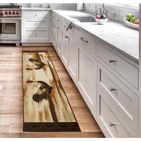 Rooster Design Beige 23 in. W x 84 in. L Stair Runner 13.42 sq. ft.