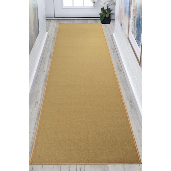 Rubber Collection Solid Beige 26 in. Width x Your Choice Length Custom Size Runner Rug