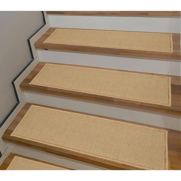 Solid Beige 6 in. x 26 in. Indoor Carpet Stair Tread Cover Slip Resistant Backing (Set of 7)