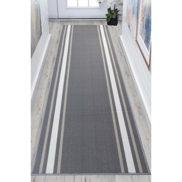 Solid Border Custom Size Gray 36 in. x 26 in. Indoor Stair Tread Cover Landing Mat Slip Resistant Backing (1-Piece)