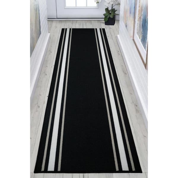Solid Border Design Cut to Size Black Color 31 .5" Width x Your Choice Length Custom Size Slip Resistant Runner Rug