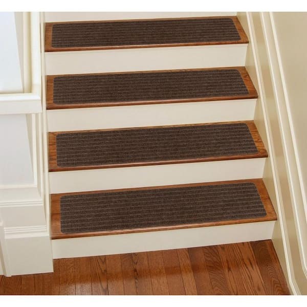 Stair Treads Collection Brown 8 Inch x 30 Inch Indoor Skid Slip Resistant Carpet Stair Treads Set of 15