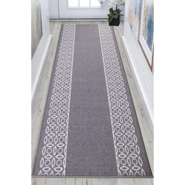 Trellis Roll Runner Cut to Size Gray 26 " Width x Your Choice Length Custom Size Slip Resistant Stair Runner