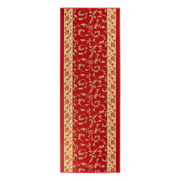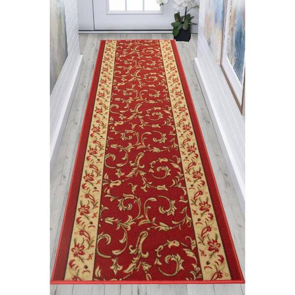 Veronica Cut to Size Red Color 31.5" Width x Your Choice Length Custom Size Slip Resistant Runner Rug