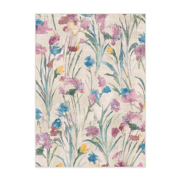 Machine Washable Rug with Standard Pad - Abeline Multicolor 5 ft. x 7 ft.