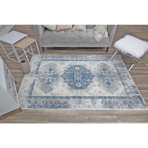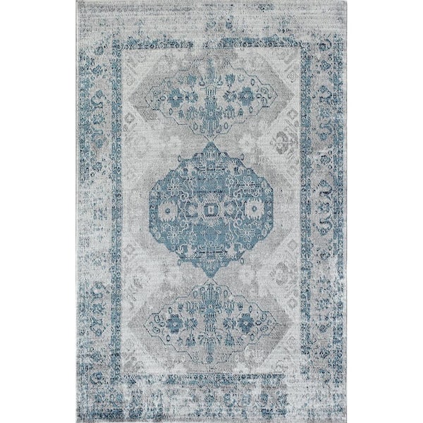 Freya Blue Grey 2'6"x8' Farmhouse Gray Area Rug