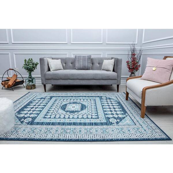 Hailey Midnight Blue 2'6"x8' Vintage Gray Area Rug