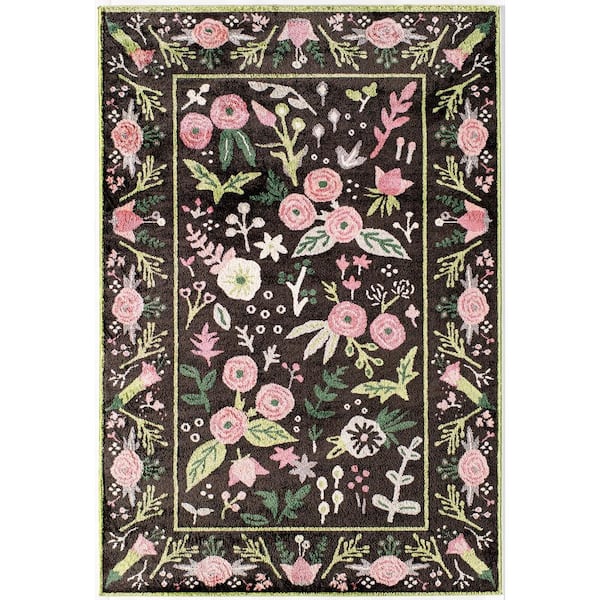 Valentina Hanna Gardenia Black Onyx Floral Transitional 8 ft. x 10 ft. Area Rug