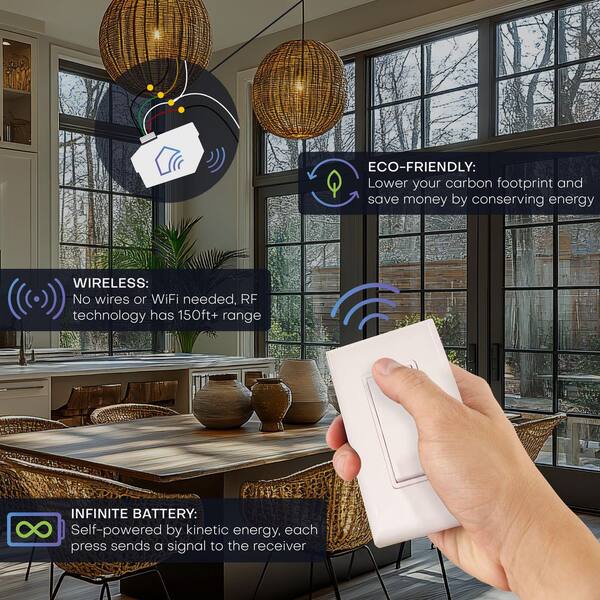 Battery-Free, Wireless Brown Rocker Dimmer Switch Kit for Dimmable Lights Remote Switch Controls Phase Dimming Receiver