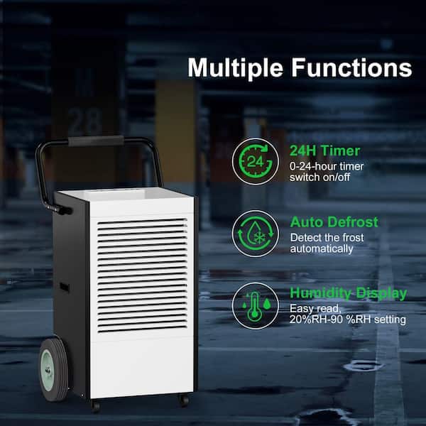225 pt. 8000 sq.ft. Industrial Commercial Dehumidifier in. Blacks with Handles and Wheels for Large Space