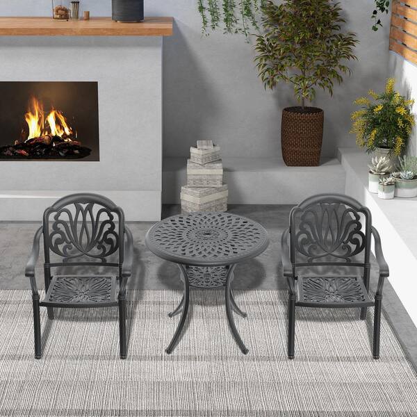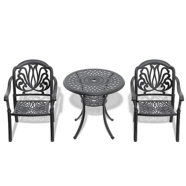 3-Piece Set Of Cast Aluminum Patio Outdoor Dining Set with Random Colors Cushions and Black Frame
