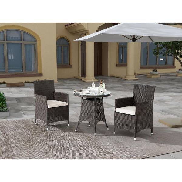 3 Piece Wicker Outdoor Dining Set All-Weather Wicker Patio Dining Table and Chairs with Beige Cushions Patio Backyard