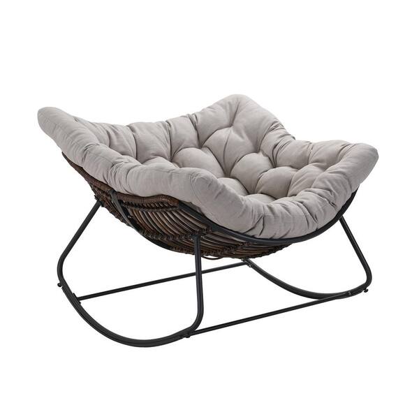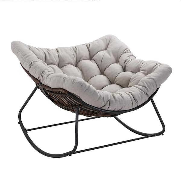 42.52 in. Grey Metal Outdoor Rocking Chair with Light Grey Cushions