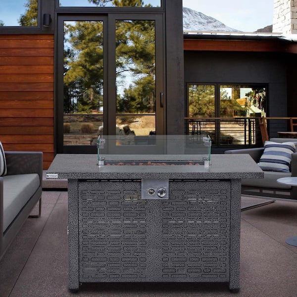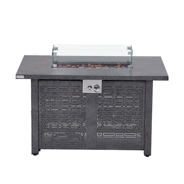 50000 BTU 41.7 in. W Grey Outdoor Fire Pit Table with Gas Hose, Lava Stones, AA Battery and Water-Resistent Cover