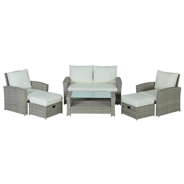 6-Piece Wicker Outdoor Sectional Set Patio Conversation Sofa Set with Gray Cushions