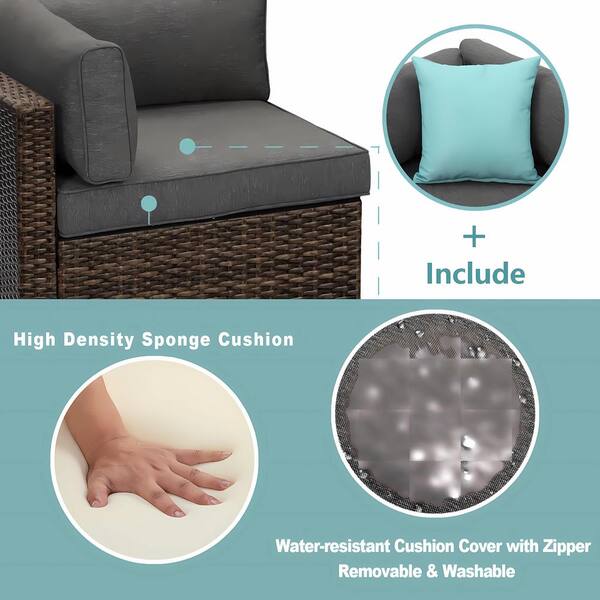 7-Piece Steel Brown Rattan Wicker Outdoor Patio Conversation Sectional Sofa Set with Dark Gray Cushions and Pillows