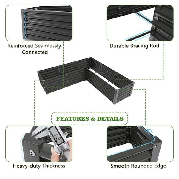 74 in. x 74 in. x18 in. Patio Outdoor Gray L-Shaped Anti-Rust Galvanized Raised Garden Beds Metal Planter Box for Plant