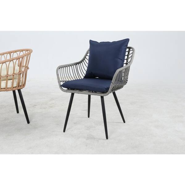 Gray 5-Piece Wicker Outdoor Bistro Set with Transparent Glass Table and Blue Cushion