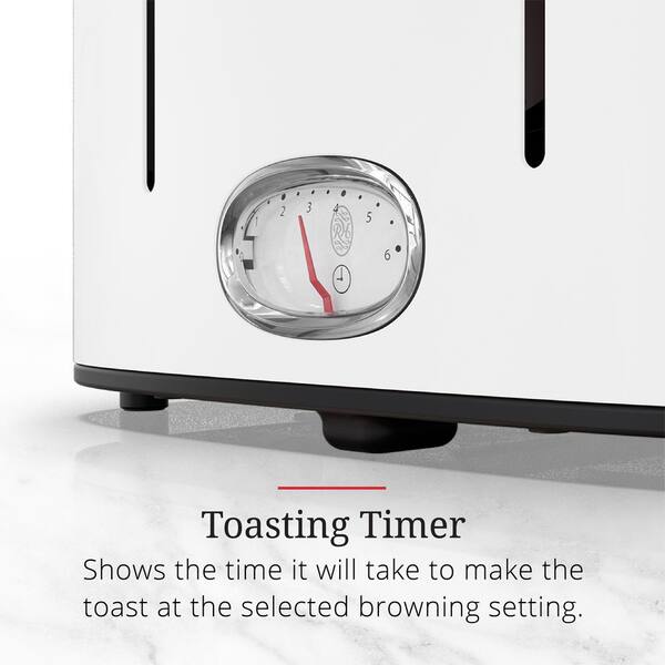 Retro Style 4-Slice White Toaster with Built-In Timer