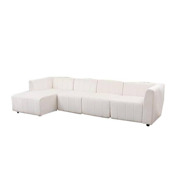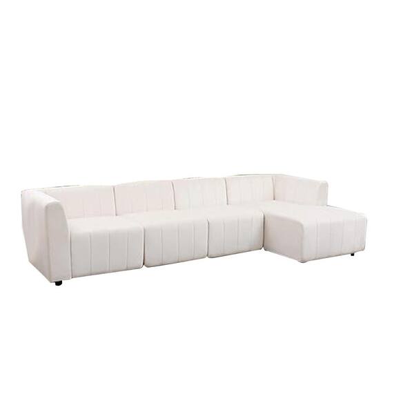 Russelle loll 118 in Straight Arm 4-Piece Microfiber L-Shaped Sectional Sofa in White