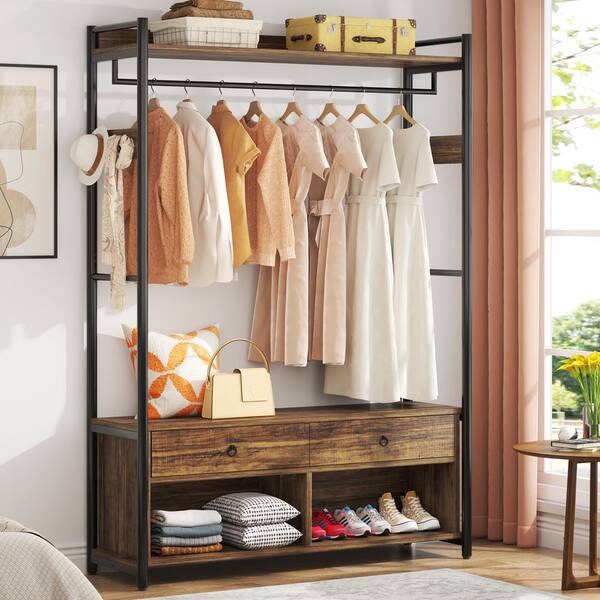 Rustic Brown 72 in. Freestanding Clothes Rack with Drawers and shelves