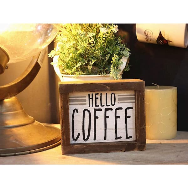 Rustic Brown Mini Hello Coffee Wood Framed Tabletop Sign