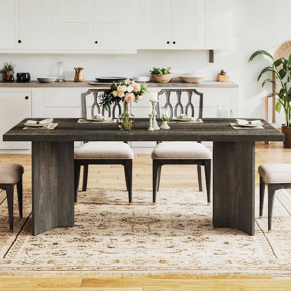 Rustic Dark Gray Engineered Wood 63 in. Double Pedestal Rectangular Dining Table Seats 6, Kitchen Table for Dinner